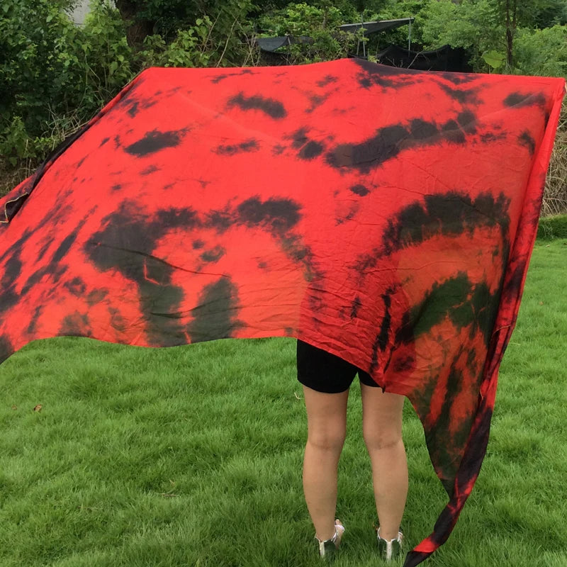 This exquisitely crafted stage performance belly dance veil is made from 100% silk, offering a luxurious feel and stunning flow in motion. Available in green and purple tie-dye, its generous size of 110cm x 240cm makes it ideal for dramatic, graceful dance movements.