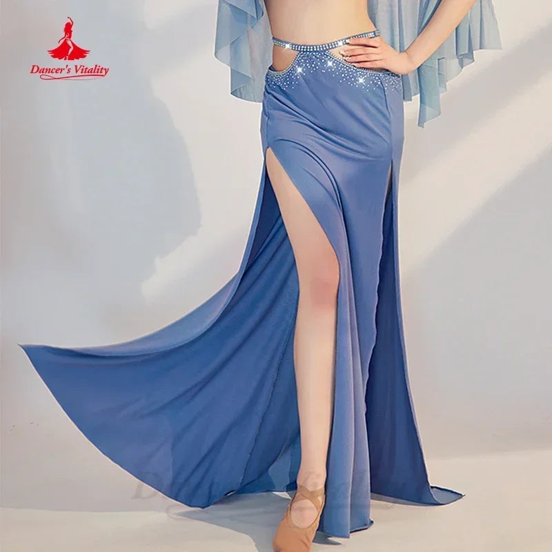 This belly dance top and skirt set is made from soft yarn blended with spandex for a smooth feel and flexible stretch, featuring a form-hugging top and a flowy skirt that move beautifully with every step. Ideal for autumn and winter practice or performance, it breathes well, keeps its shape, and is easy to care for—hand wash cold and lay flat to dry.