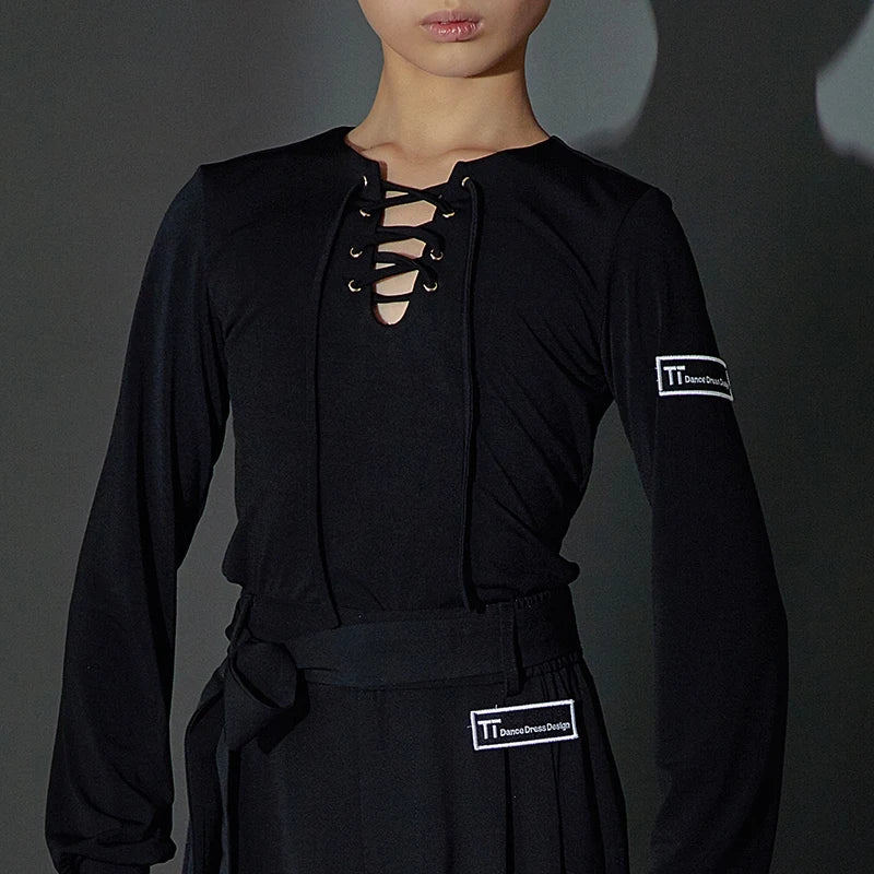 This boys' ballroom dance set features a stylish lace-up neckline shirt and high-waisted trousers, crafted with high-quality materials for a comfortable fit. Ideal for Latin dance practices or performances, its blend of flexibility and easy-care properties ensures both motion ease and durability.