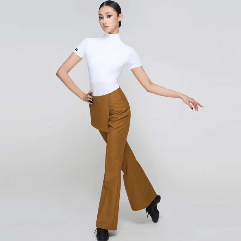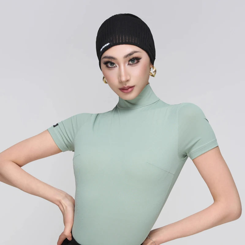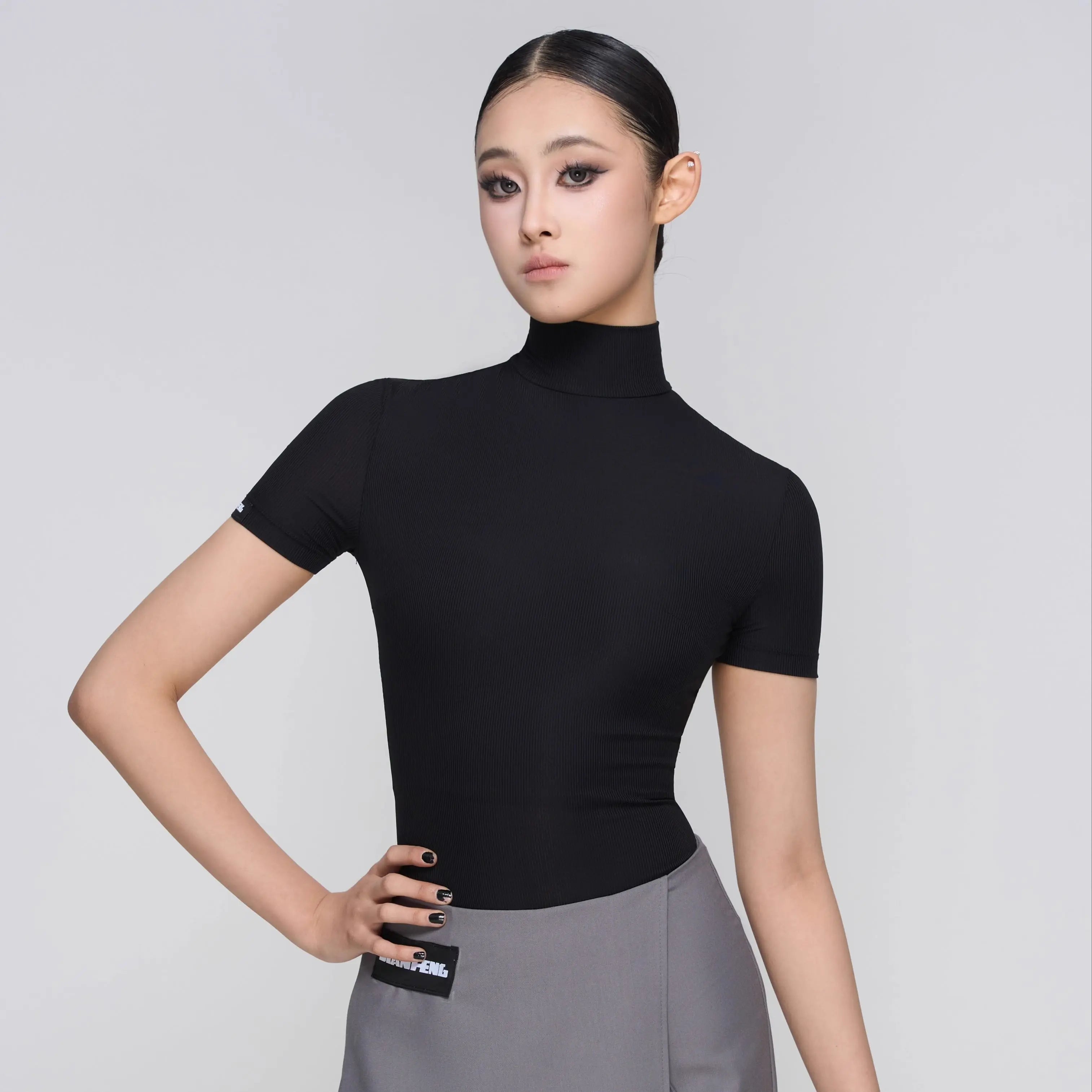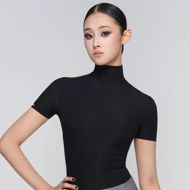 This dance top features a mock neck and short sleeves, blending comfort with style. It pairs perfectly with flared dance pants for a stunning look suitable for any dance activity.