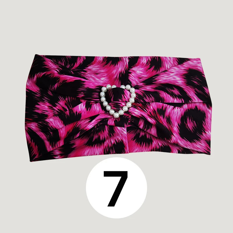 Girls' Embellished Headband for Dance, Various Colors & Animal Prints, Stretch Fabric, Heart Pearl Accent