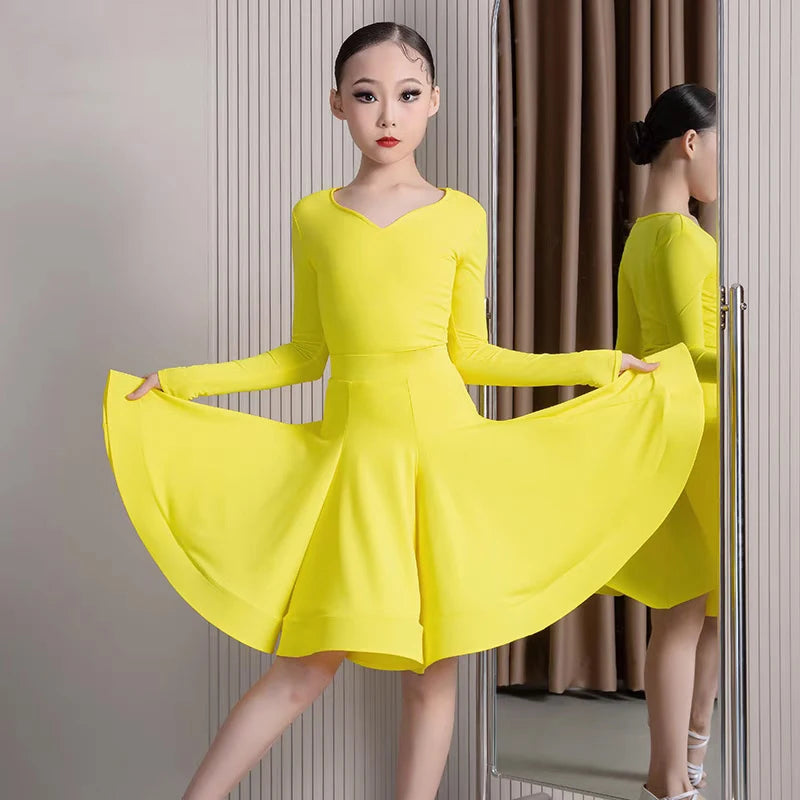 This elegant navy blue ballroom Latin dance dress is crafted from a comfortable and flexible fabric, offering a flattering V-neck design with finger loops for ease of movement during performances. Perfect for dance competitions and practice, this dress ensures grace and style while being easy to care for with recommended gentle wash instructions.