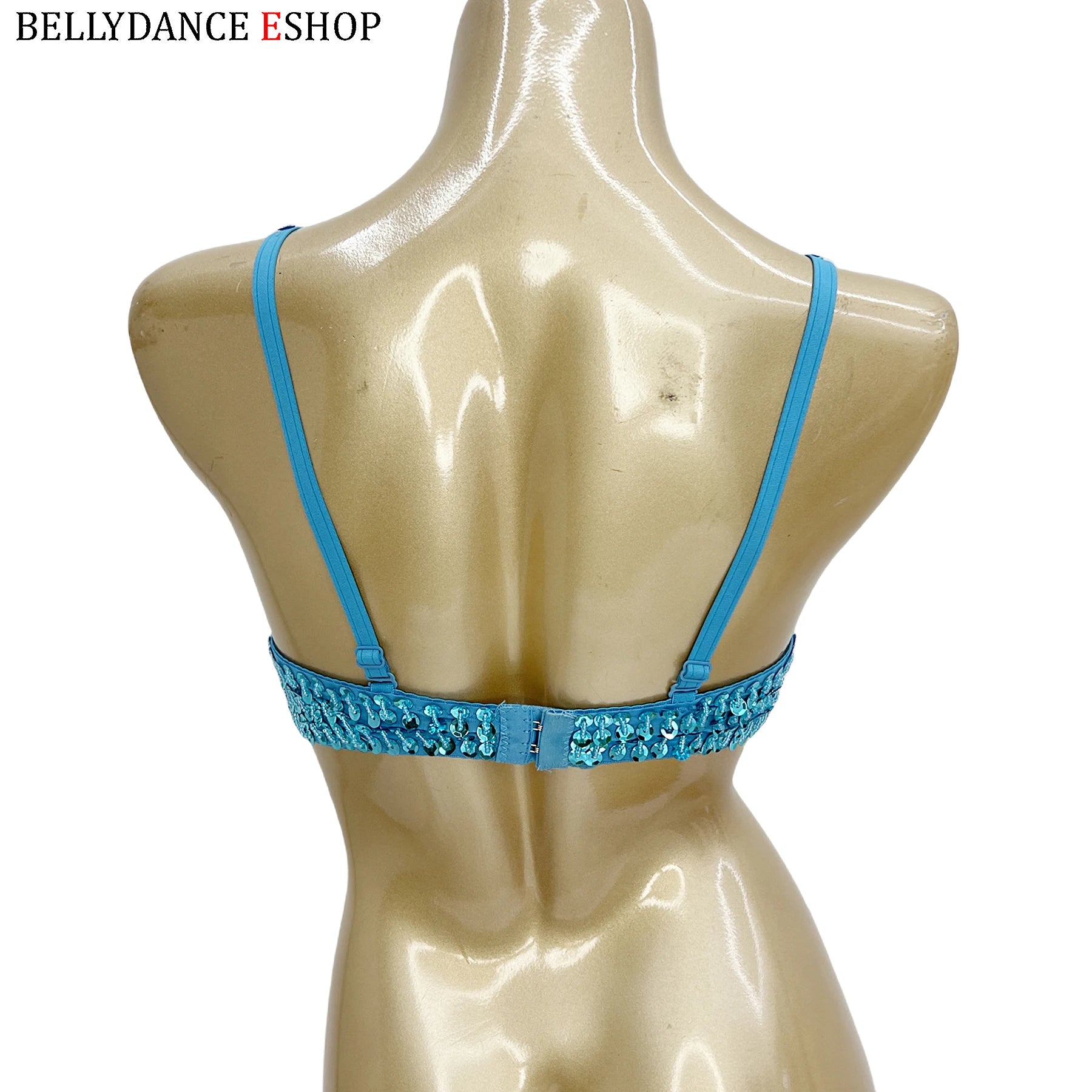 This red belly dance bra features bejeweled sequins and rhinestone embellishments, offering both style and support with its padded design. Ideal for rave events and dance festivals, its durable craftsmanship ensures lasting sparkle and elegance, making it a standout piece for performances and costume parties.