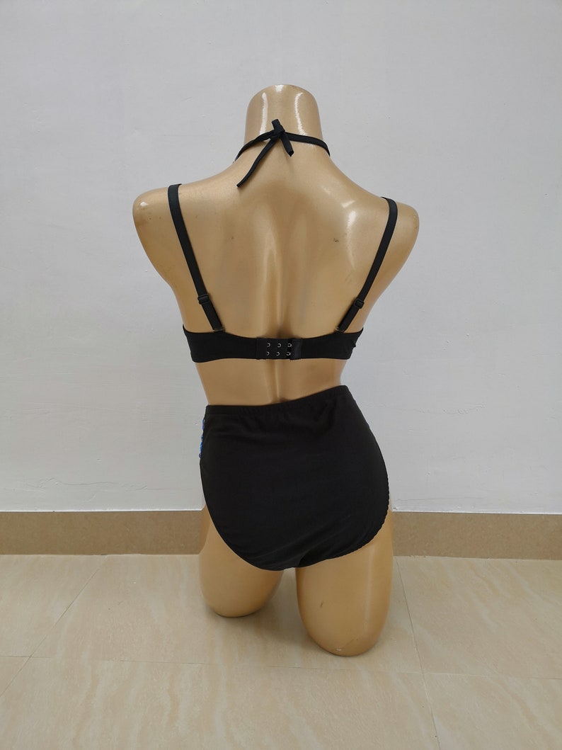This stunning blue and teal set, adorned with iridescent rhinestones, includes a bra, high-waisted briefs, and choker, perfect for dance, carnival, or rave events. The fabric is designed for comfort and flexibility, and pieces can be custom-made to fit your size within two days.