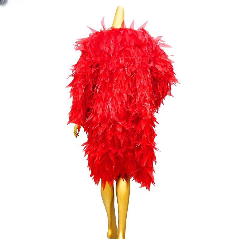 This elegant purple feathered dance dress features long sleeves and a flattering silhouette, perfect for adding flair to any performance or special occasion. Its soft fabric offers gentle stretch for comfortable wear, making it a versatile addition to your wardrobe.