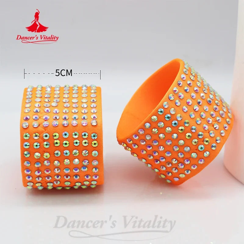 Enhance your dance experience with these neon green rhinestone slip-on heel protectors, designed to offer a secure fit for ballroom and Latin salsa dances while protecting your shoe heels from wear and tear.