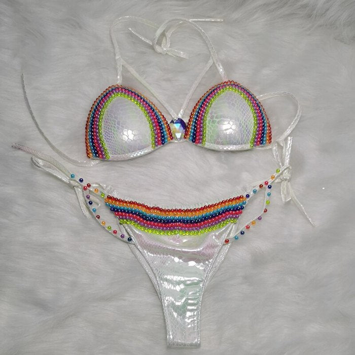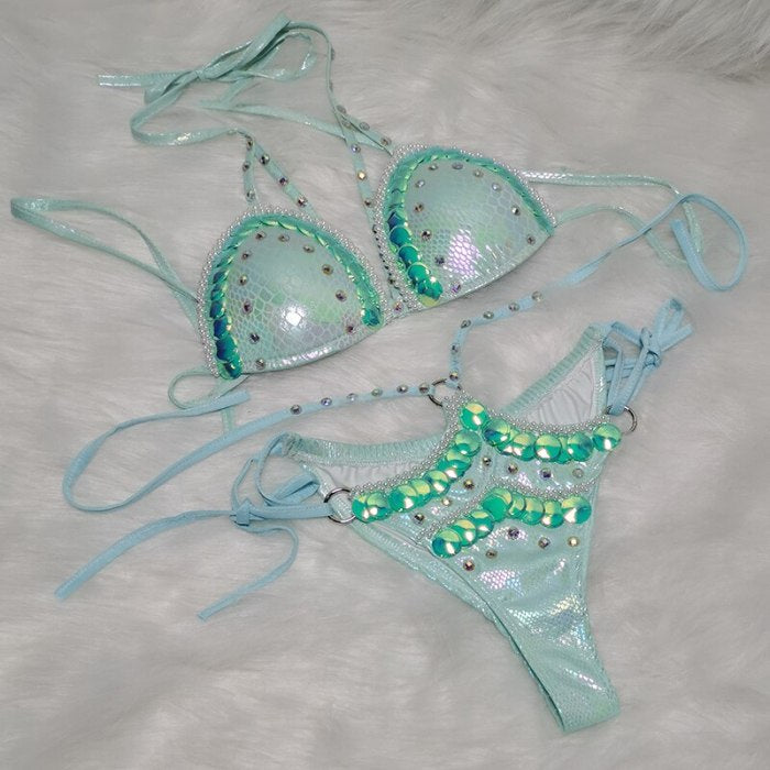 Sequined Beaded Two-Piece Bikini Swimsuit