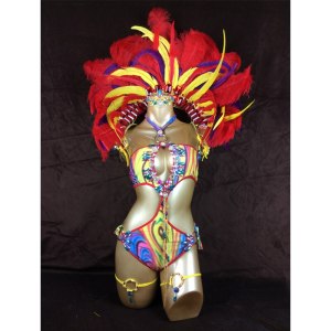 Samba Carnival Costume with Multicolor Feather Headpiece