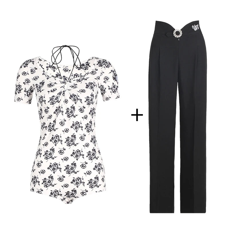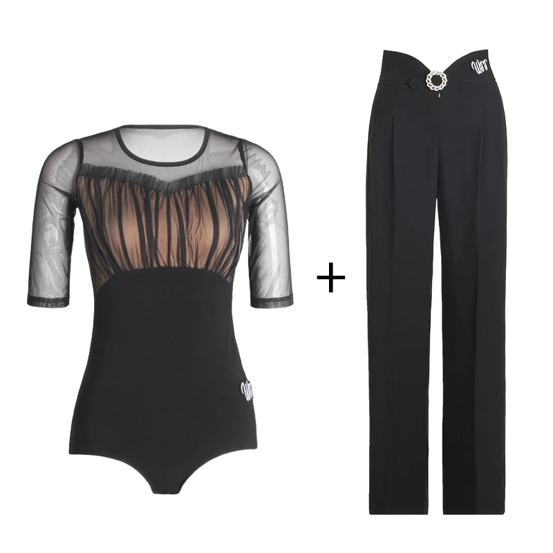 These women's high waist pleated wide leg ballroom dance pants are crafted from a comfortable fabric offering a flowing fit, ideal for dynamic performances. Designed with style and flexibility in mind, they provide a graceful silhouette perfect for both practice and formal dance events.