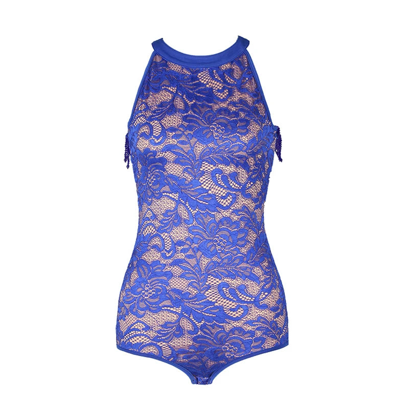 This Women's Black Lace Halter Bodysuit with Fringe Latin Dance Skirt combines elegance with function, featuring a stretchy fabric for a comfortable fit and a dramatic fringe that enhances movement, perfect for dance performances.