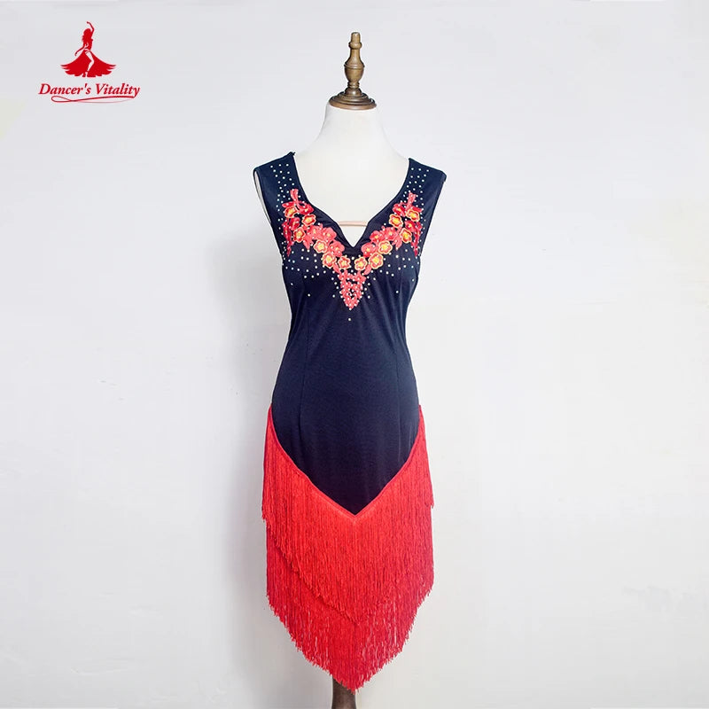 This Women's Black & Neon Green Latin Dance Dress features eye-catching fringe, ornate appliques, and shimmering rhinestones, making it perfect for performances or competitions. Its sleek fit and stylish design provide both comfort and elegance on the dance floor.