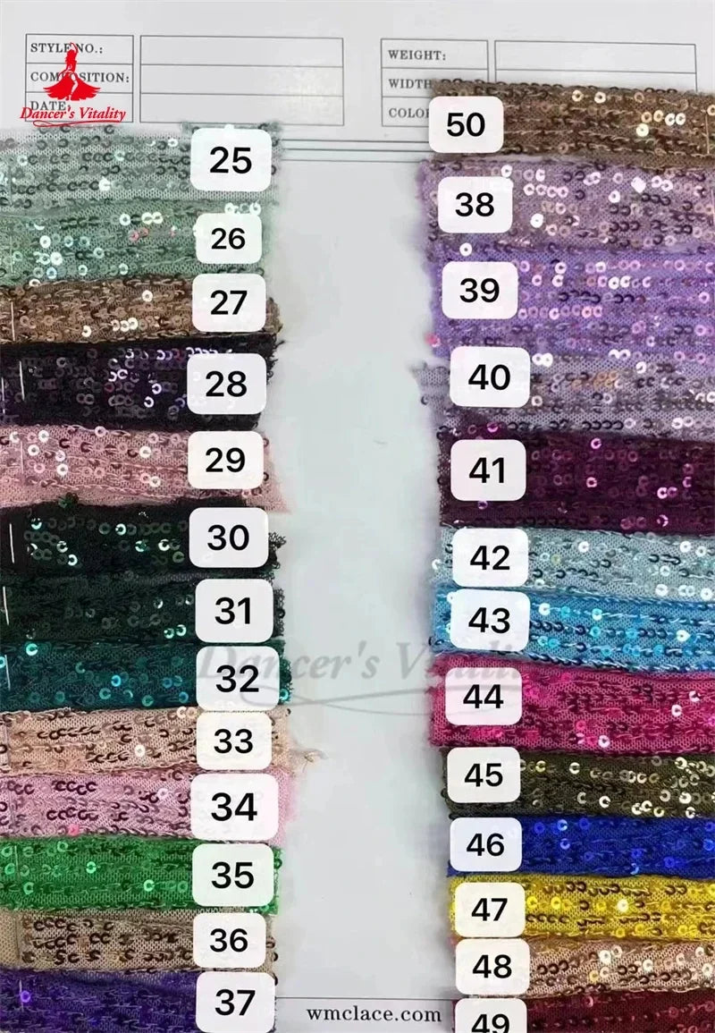 This light blue sequin two-piece set features a crop top with draped details and a matching skirt, designed specifically for belly dance performances. The outfit offers sparkle and freedom of movement, ideal for creating an enchanting look on stage.