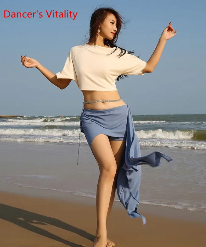 This elegant belly dance set features a pink crop top paired with a ruched slit skirt, accentuated by a dazzling rhinestone waist chain. Crafted for flexibility and style, it is perfect for performances or themed events, ensuring you look stunning while moving effortlessly.
