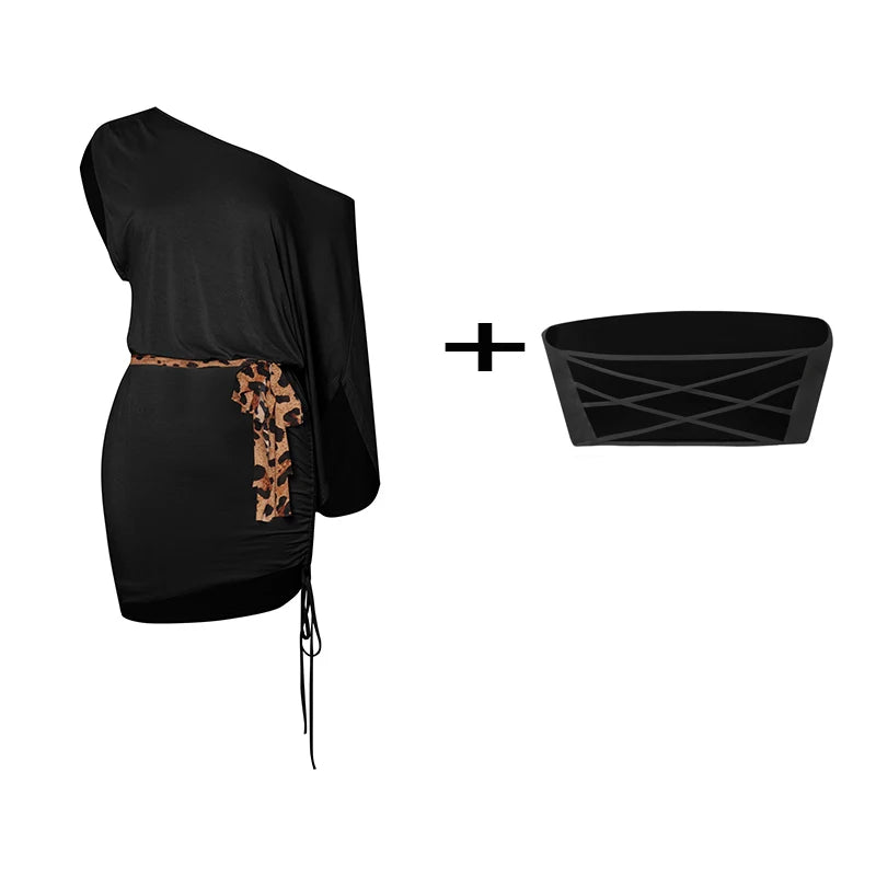 This women's pink off-shoulder mini dress features elegant dolman sleeves and a form-flattering ruched design, perfect for both casual outings and sophisticated occasions. Its stretchy fabric and exquisite white tie detail at the waist offer both comfort and style, making it an ideal choice for various body shapes and events.