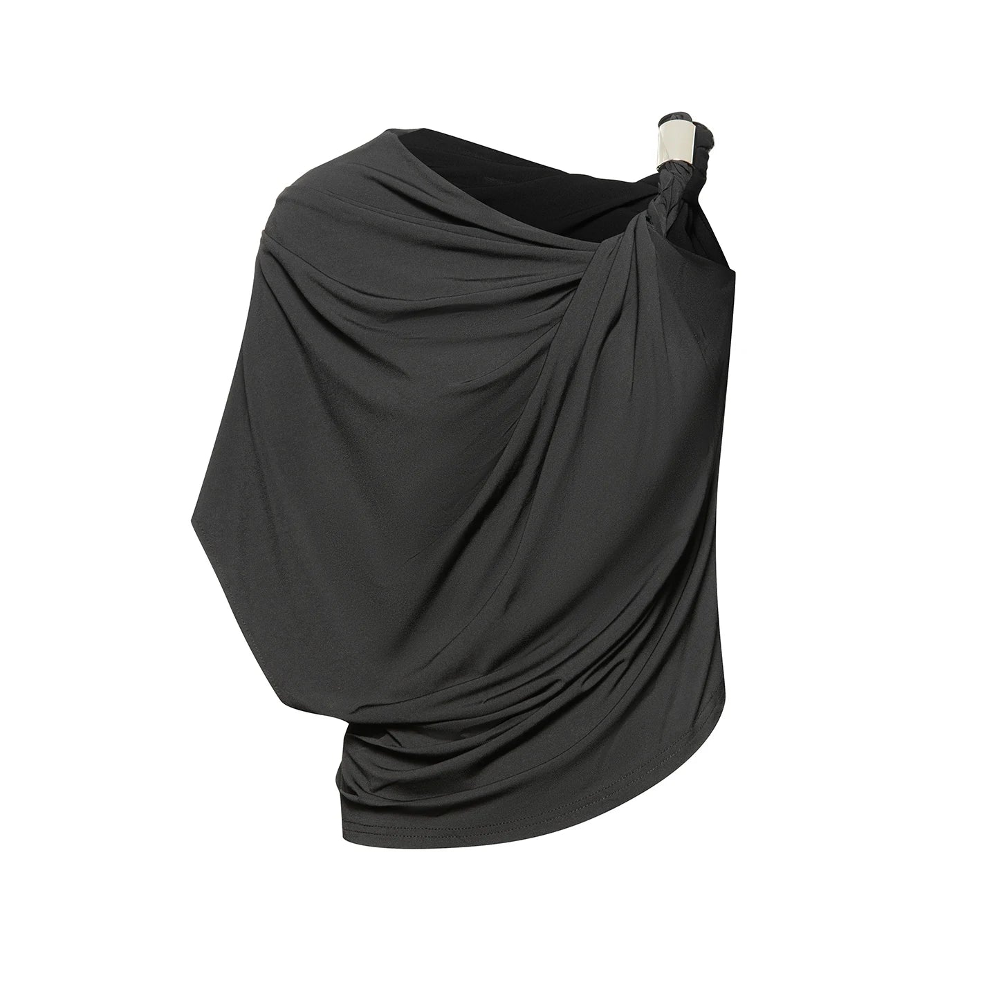 Women's Red & Black Drape Asymmetrical Slit Latin Dance Dress with Buckle Detail